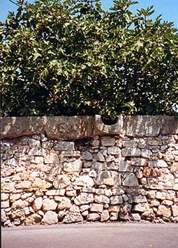 | Ce moulin à recence situé presque en plaine est le dernier de la chaîne du canal des moulins. Il fut transformé un temps en en cave à vin. Il est précédé d'un bel aqueduc de 28 mètres de long sans arcades, avec le canal au sommet construit en pierres taillées. | |