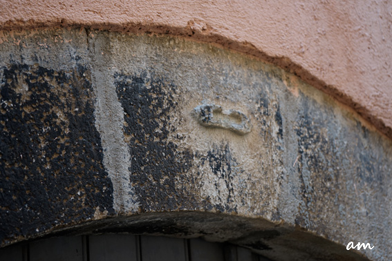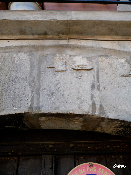 - Ci-dessus: une navette sculptée sur une clé de voute, rue de l'Hôpital Vieux